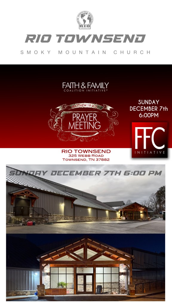 FAITH & FAMILY COALITION will be having a PRAYER MEETING December 7th 6pm at RIO TOWNSEND SMOKY MOUNTAIN CHURCH.